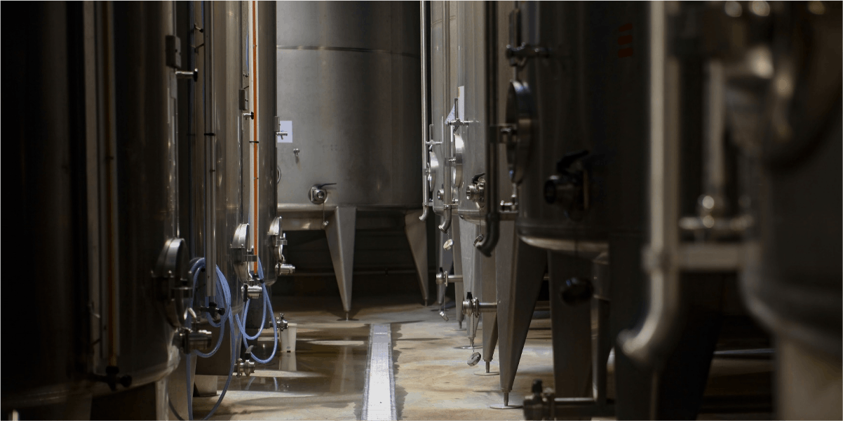 Bienvenue dans notre cuverie froide ! Et elle porte bien son nom car sa température n’excède jamais 5 degrés. Installée en 2017, notre nouvelle cuverie froide compte 26 cuves principalement en inox et peuvent contenir jusqu’à 7 000 hectolitres ! Le contrôle de la température permet un meilleur contrôle de la fermentation et d’éviter ainsi que le cidre parte en vinaigre !